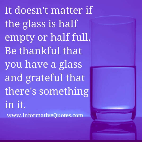 - Finally….remember not to look at your glass half empty. Try to see it half full. If you can’t see it half full, then….just be thankful you have a glass!