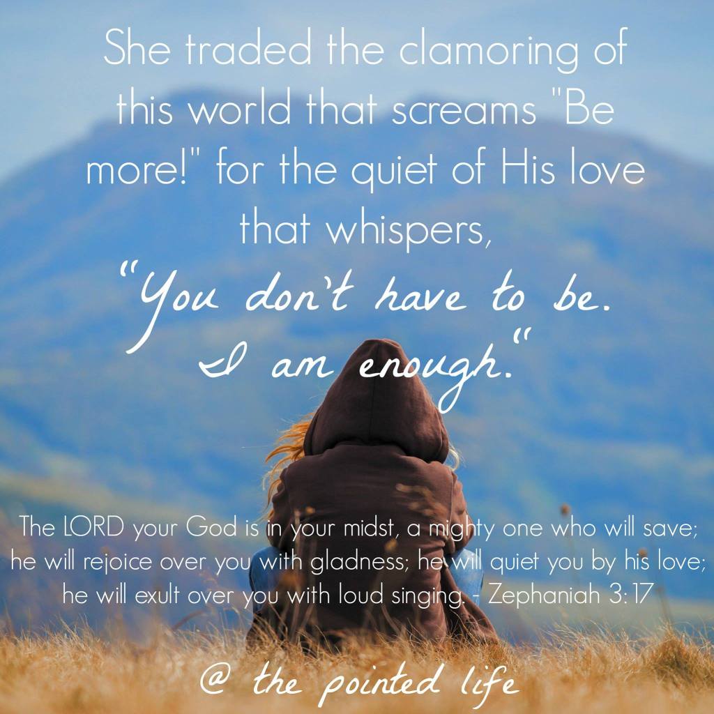 Starting as an insecure teenage girl, I learned that by doing came approval. Youth Sunday at church needs someone to share? Ask Jodi. She’ll do it. Need someone to teach a class? Ask Jodi. She’ll do it. Need someone to serve on a committee? Get Jodi. She’ll do it. Want someone to watch your kids? Jodi will, and she’ll even entertain them with her reading skills. I found myself working, trying, pushing, working, volunteering, serving, working to earn the approval of others….to feel like I mattered. Get the picture. Don’t get me wrong…I enjoy each of those things, but I also found myself saying “yes” when I didn’t really have the desire to do it…in order to please others….to be accepted.